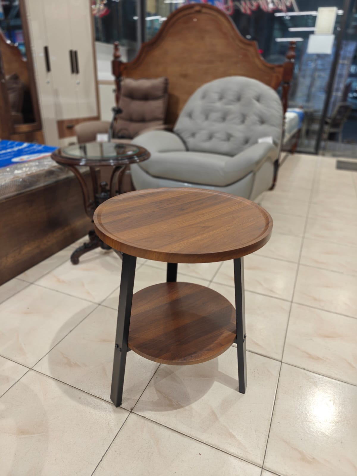 Add a touch of elegance to your living space with this stylish Round Side Table. Crafted with a premium wood-finish top and supported by a strong powder-coated metal frame, it offers excellent stability and long-lasting durability. The smooth round tabletop is perfect for placing lamps, décor, coffee mugs, or books, while the lower circular shelf provides extra storage and display space. Its compact size and modern design make it ideal for living rooms, bedrooms, lounges, or beside sofas and accent chairs. A perfect blend of practicality and contemporary style.