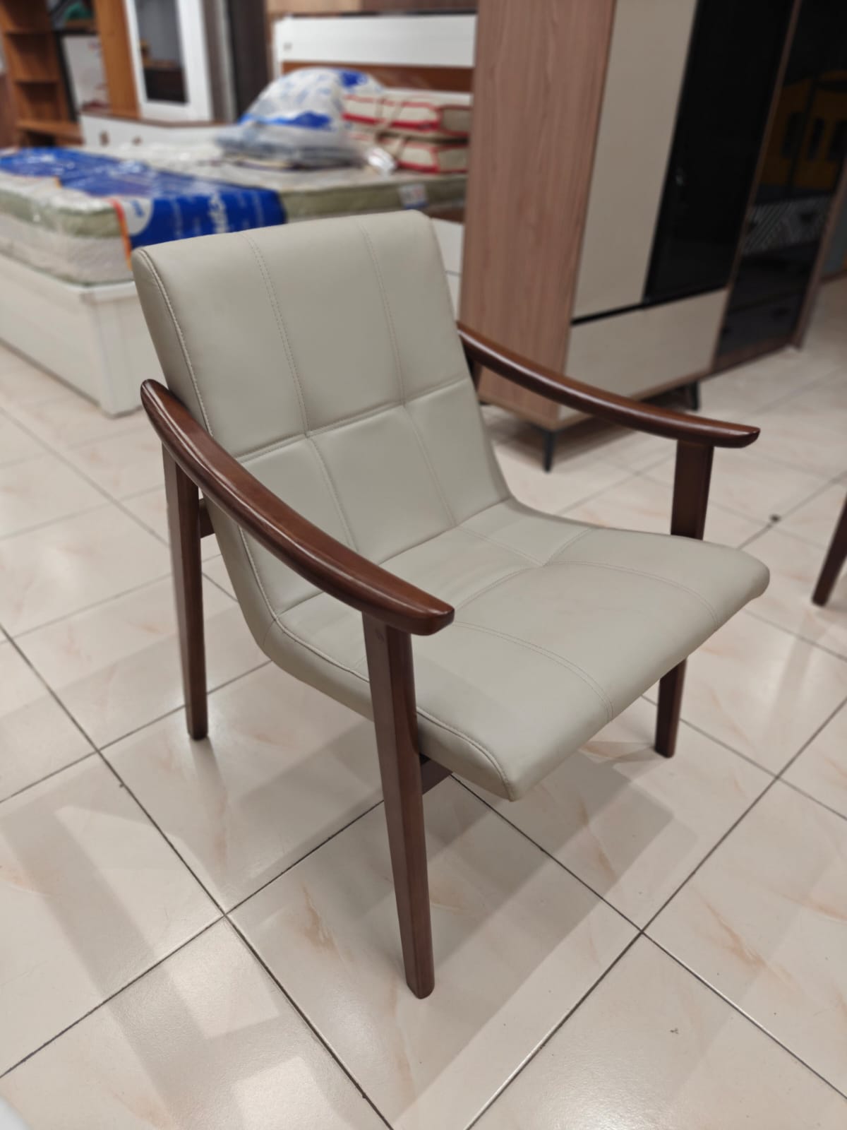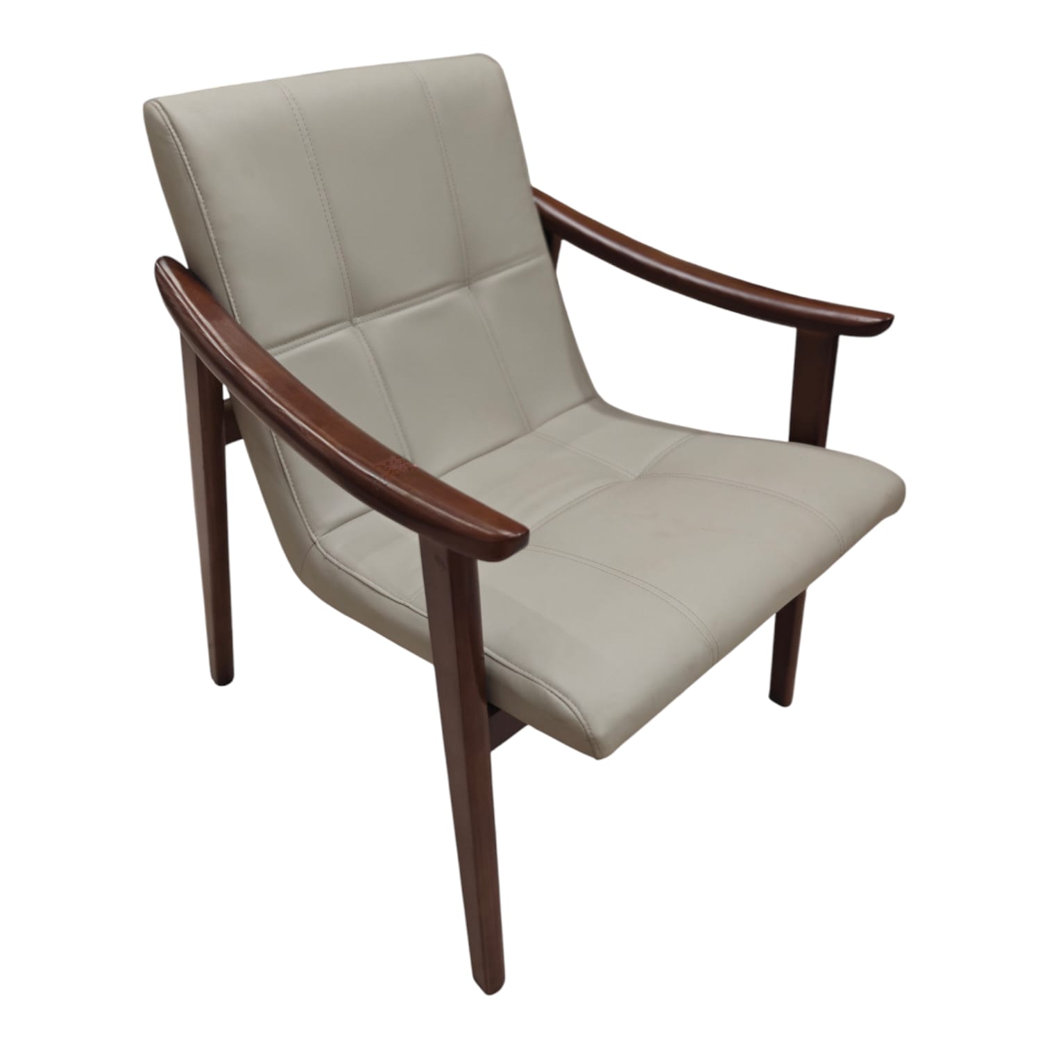 Finished with high-quality upholstery and a rich wood polish, this chair blends beautifully into smart, modern interior spaces—whether living rooms, lounges, office cabins, or reading corners. The minimal yet elegant design adds warmth to any décor while maintaining a contemporary feel.