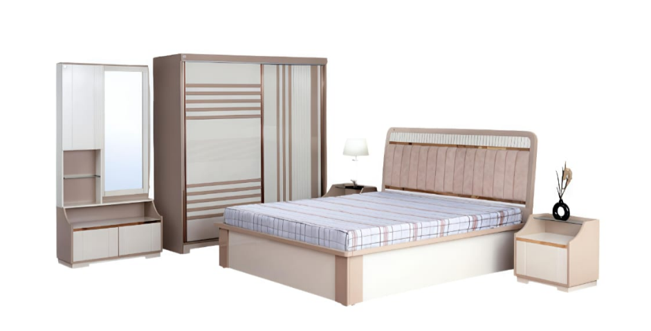 1 King Size Bed - Rs.72000/-2 Side Tables - Rs. 9600/- per piece1 Dresser - Rs. 27000/-1 Wardrobe - Slider Wardrobe; Rs.75000/-4 door wardrobe; Rs. 66000/-