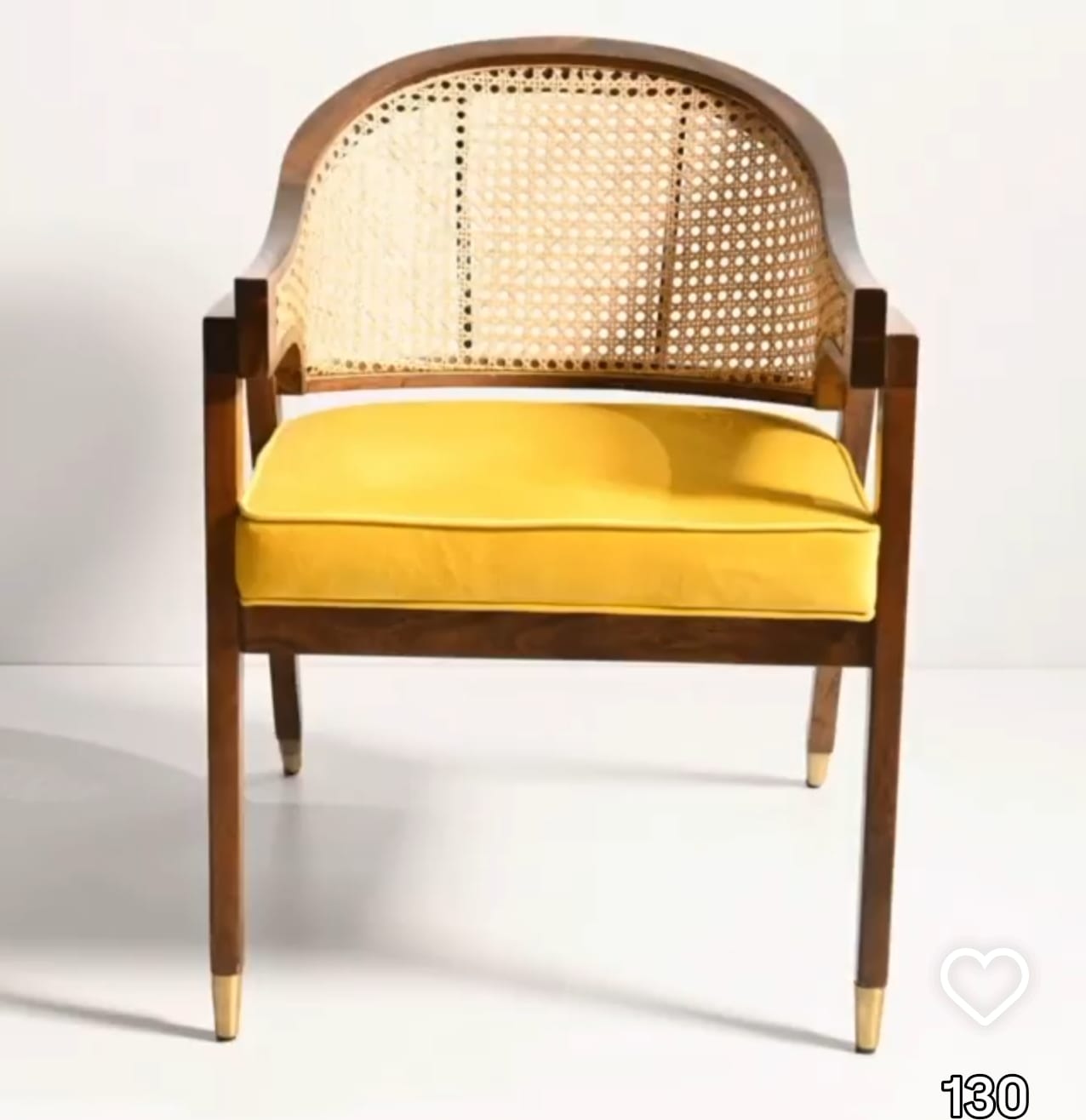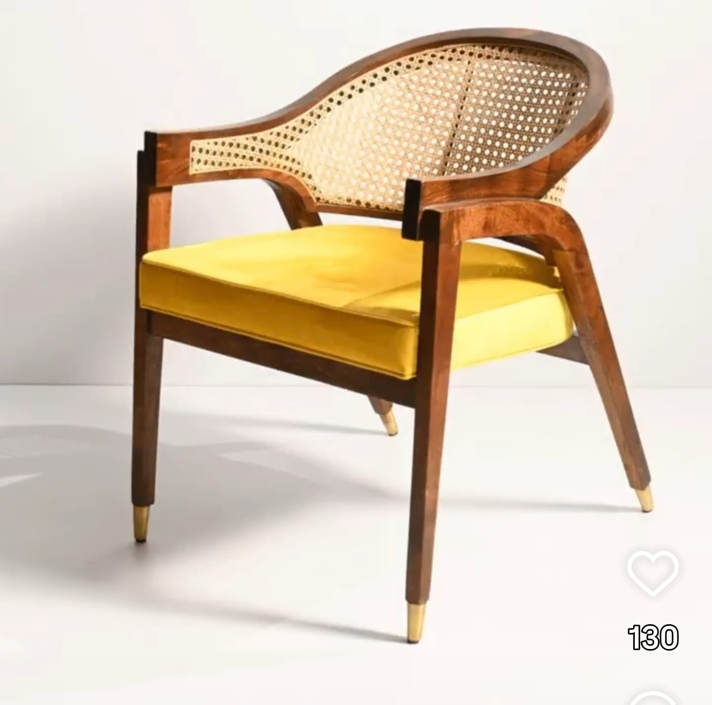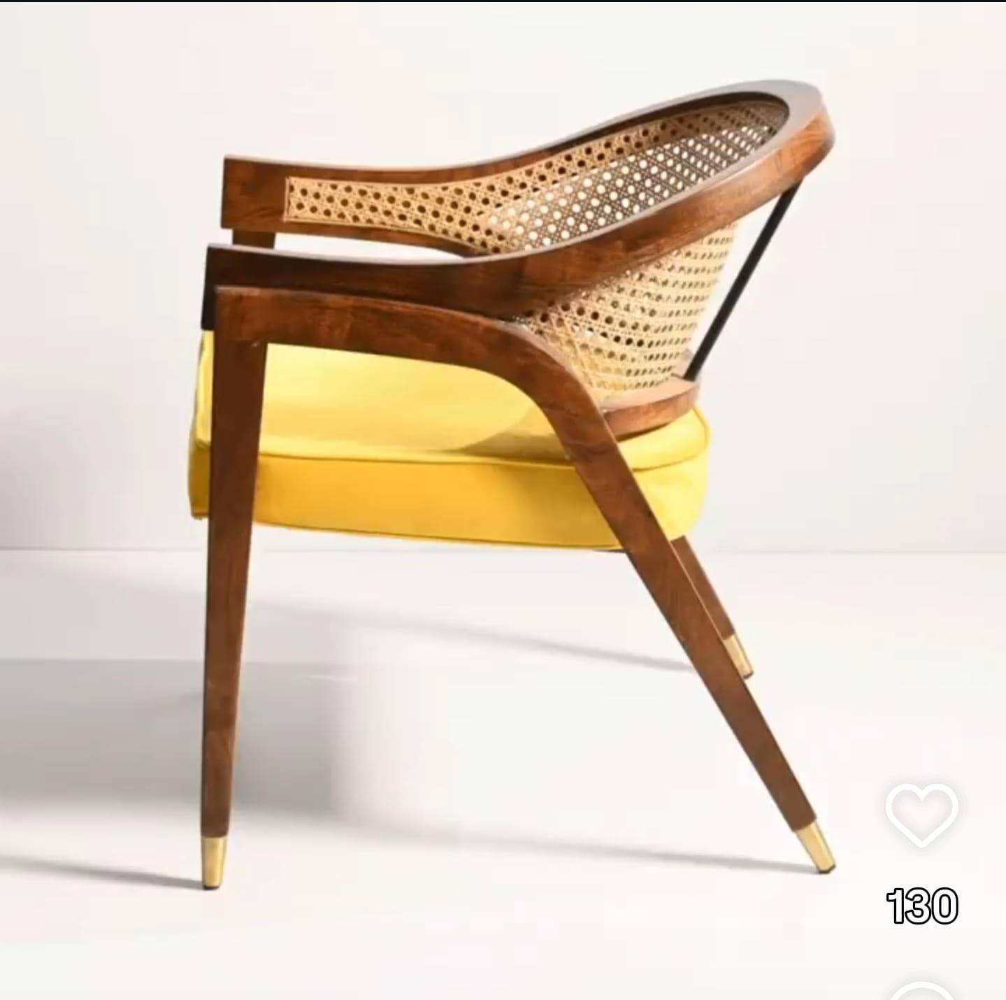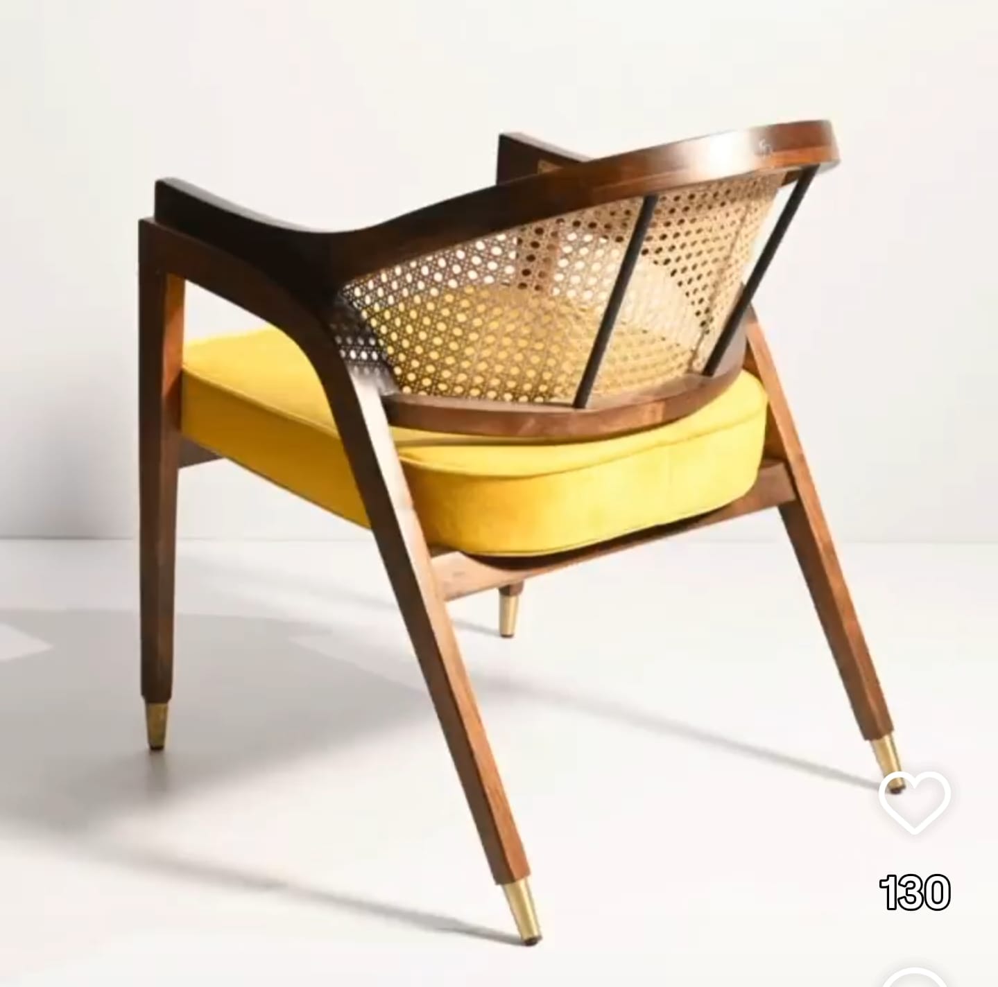 The chair features original cane work on the backrest, carefully hand-woven to provide breathability, elegance, and long-lasting strength. A well-padded seat cushion ensures superior comfort and relaxation, making it perfect for long seating hours.