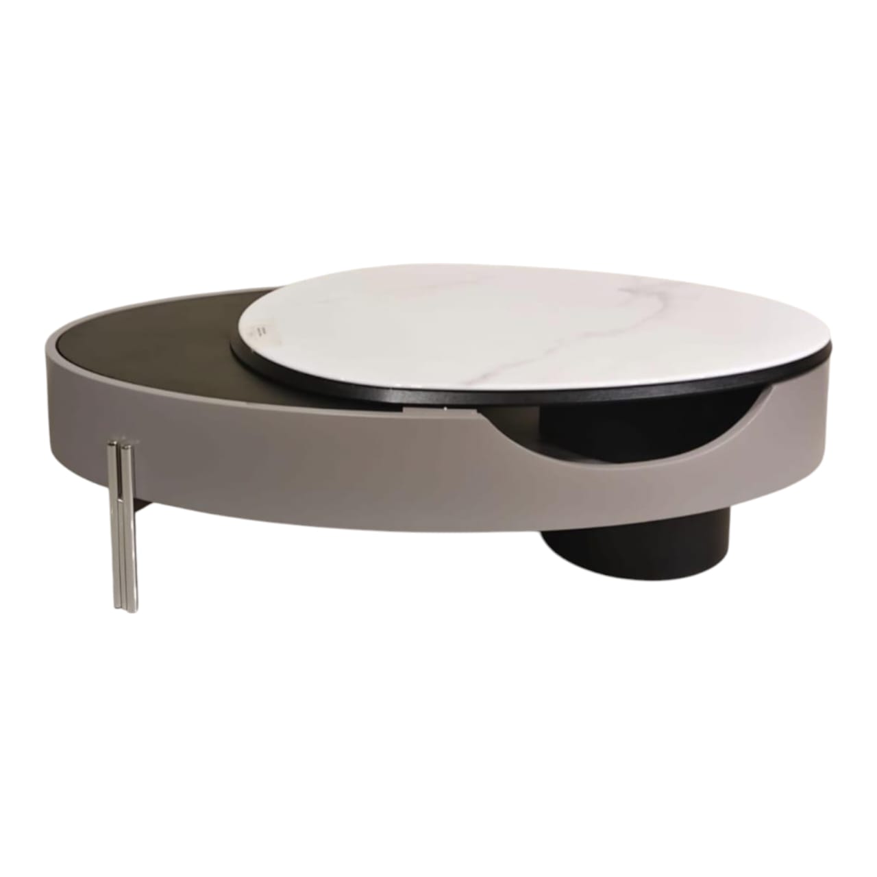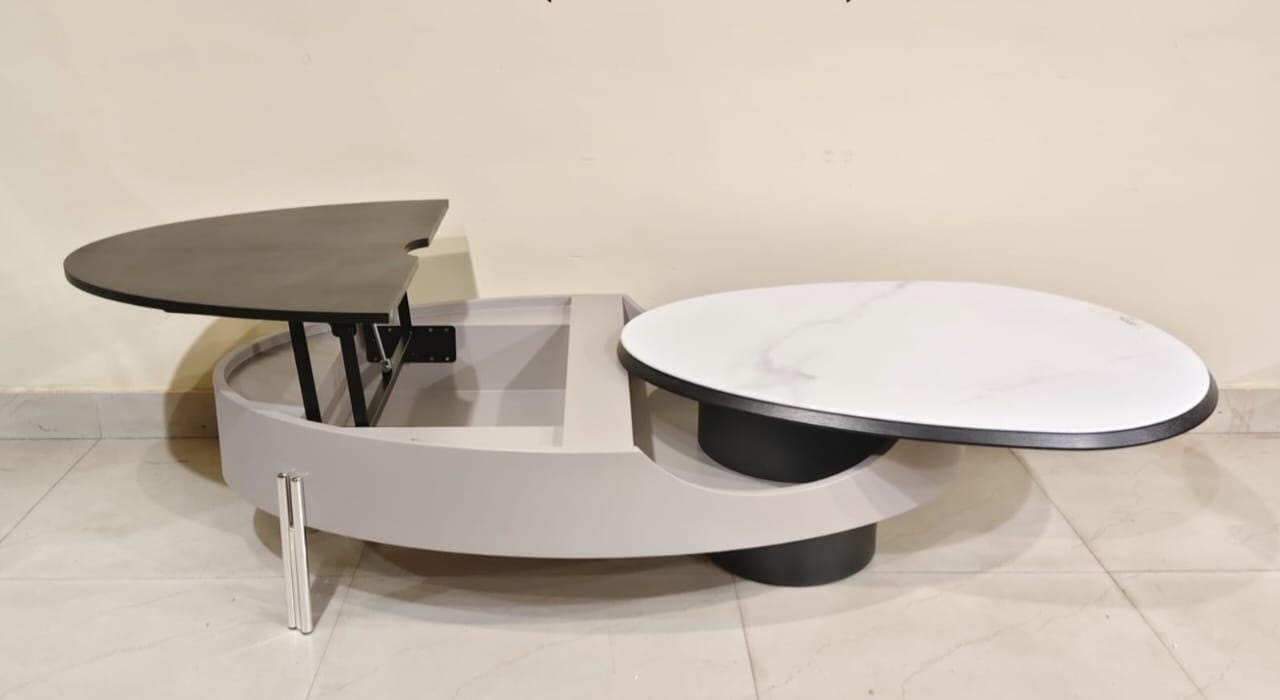 Imported Rotating Center Table – Smart & StylishThis imported center table comes with a unique rotating feature. Simply rotate the top to access hidden storage and a foldable lift-up stand — perfect for laptop work, office tasks, or even enjoying your meals comfortably.It is designed to save space while offering maximum functionality. After use, you can easily close it, and it occupies minimal space in your living area.The elegant marble top adds a premium and luxurious touch, making it both stylish and highly practical for modern homes.