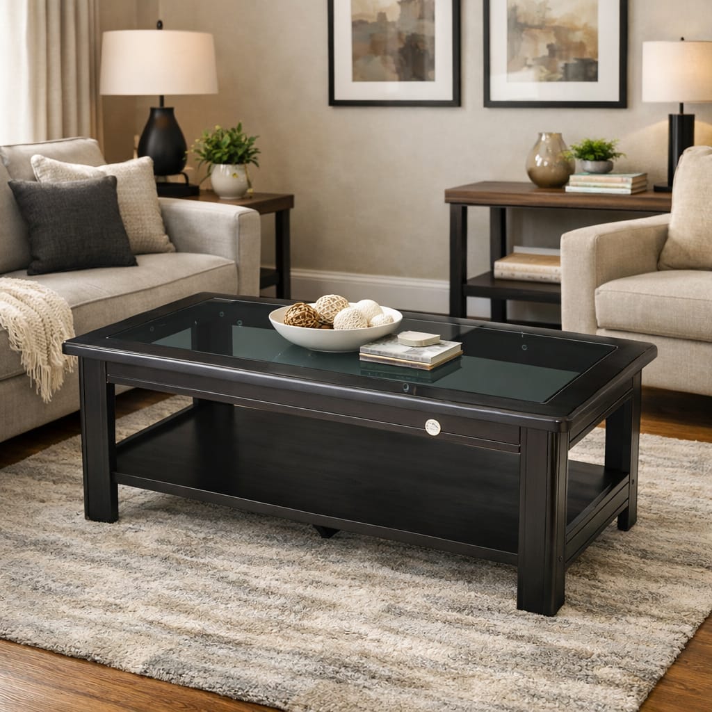 Introducing the Rose Centre Table, a perfect blend of simplicity, strength, and refined elegance by Alder. Designed to enhance modern living spaces, this centre table features a toughened glass top that adds durability while offering a clean, premium look.Crafted from high-quality MDF board with rich walnut melamine polish, the Rose Centre Table reflects warmth, sophistication, and long-lasting performance. Its practical lower shelf provides convenient storage for magazines, décor, or everyday essentials, keeping your space organized without compromising style.With its minimal yet luxurious design, the Rose Centre Table brings a rich and elegant presence to any living room, making it an ideal choice for both modern and classic interiors.