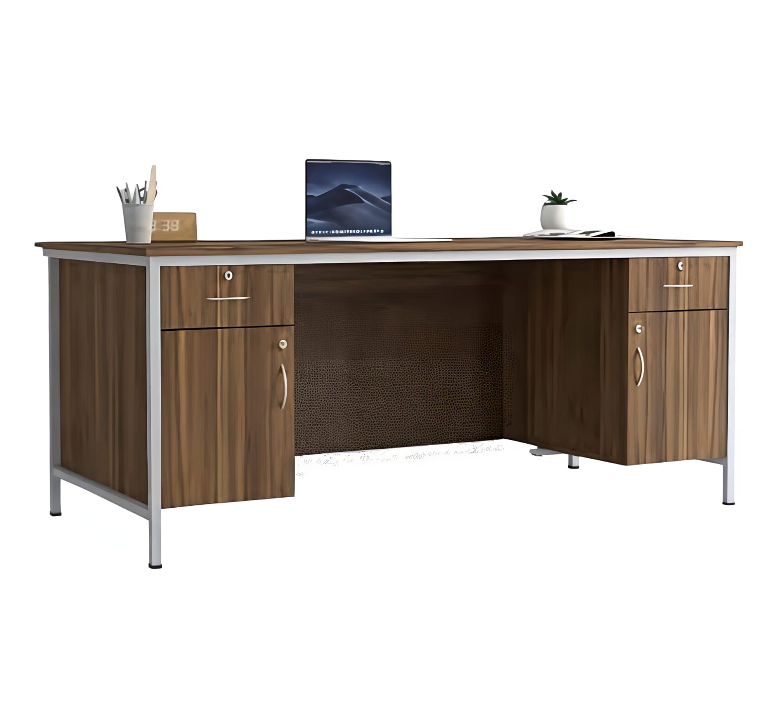 Premium Office Table with Heavy Metal FrameUpgrade your workspace with this strong and stylish office table, crafted with high-quality PLM board and a heavy-duty metal frame that ensures excellent strength and long-lasting durability. The solid metal structure provides superior support, making it perfect for daily office use.This table comes with two smooth-glide drawers and two spacious cabinets, all fitted with good quality locking systems to keep your important files and belongings safe and secure. The smart design offers ample storage while maintaining a neat and professional look.With its modern finish, sturdy construction, and practical storage, this office table is an ideal choice for offices, cabins, and work-from-home setups.✔ Made with premium PLM board✔ Heavy metal frame for extra strength✔ Two drawers and two cabinets with quality locks✔ Strong, durable, and long-lasting buildOnly available at Ghar Furniture.If you'd like, I can also make a shorter version for posters or social media.