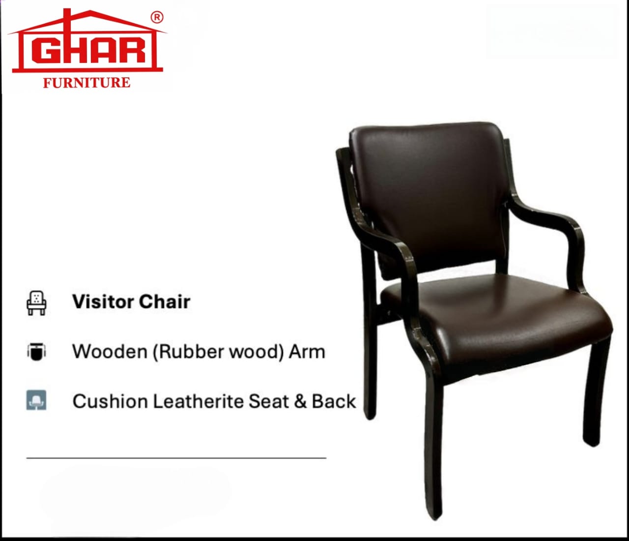 Premium Rubber Wood Visitor ChairCrafted from high-quality Rubber Wood, this elegant visitor chair combines strength, durability, and timeless design. The sturdy wooden arms provide excellent support, while the cushioned leatherite seat and back ensure superior comfort for long sitting hours.Perfectly designed for multiple uses, this chair is ideal for:* Office visitor seating* Reception areas* Meeting & conference rooms* Cabin seating* Waiting areas* Study or straight seating setupIts strong frame structure and premium finishing make it suitable for regular office use while maintaining a classy and professional look.Features: ✔ Solid Rubber Wood Arm & Frame✔ Cushion Leatherite Seat & Back✔ Comfortable & Durable Design✔ Elegant Office Look✔ Strong & Long-Lasting BuildA perfect combination of comfort, style, and reliability for every workspace.