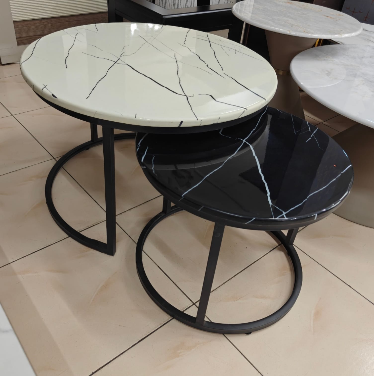 Premium 2-Piece Centre Table Set – Modern Marble EleganceEnhance your living space with this stylish 2-piece centre table set, designed to bring a perfect blend of elegance and functionality. Crafted with a sturdy metal frame and finished with powder coating polish, this table ensures long-lasting durability along with a sleek modern look.The tabletop features a luxurious marble finish, adding a rich and sophisticated touch to your interiors. Its smart nesting design allows flexible usage—use them together for a layered look or separately as per your space and need.✨ Key Features:Elegant 2-piece centre table setStrong metal frame with powder coating finishPremium marble top designSpace-saving nesting styleModern and stylish appearanceHigh-quality imported productAvailable at Car FurniturePerfect for living rooms, lounges, or modern office spaces, this centre table set is designed to elevate your décor effortlessly.
