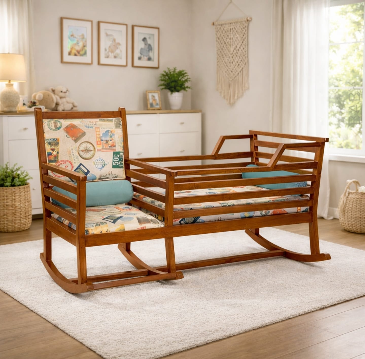 Rocking Baby Cot cum Rocking Chair – 100% Teak Wood