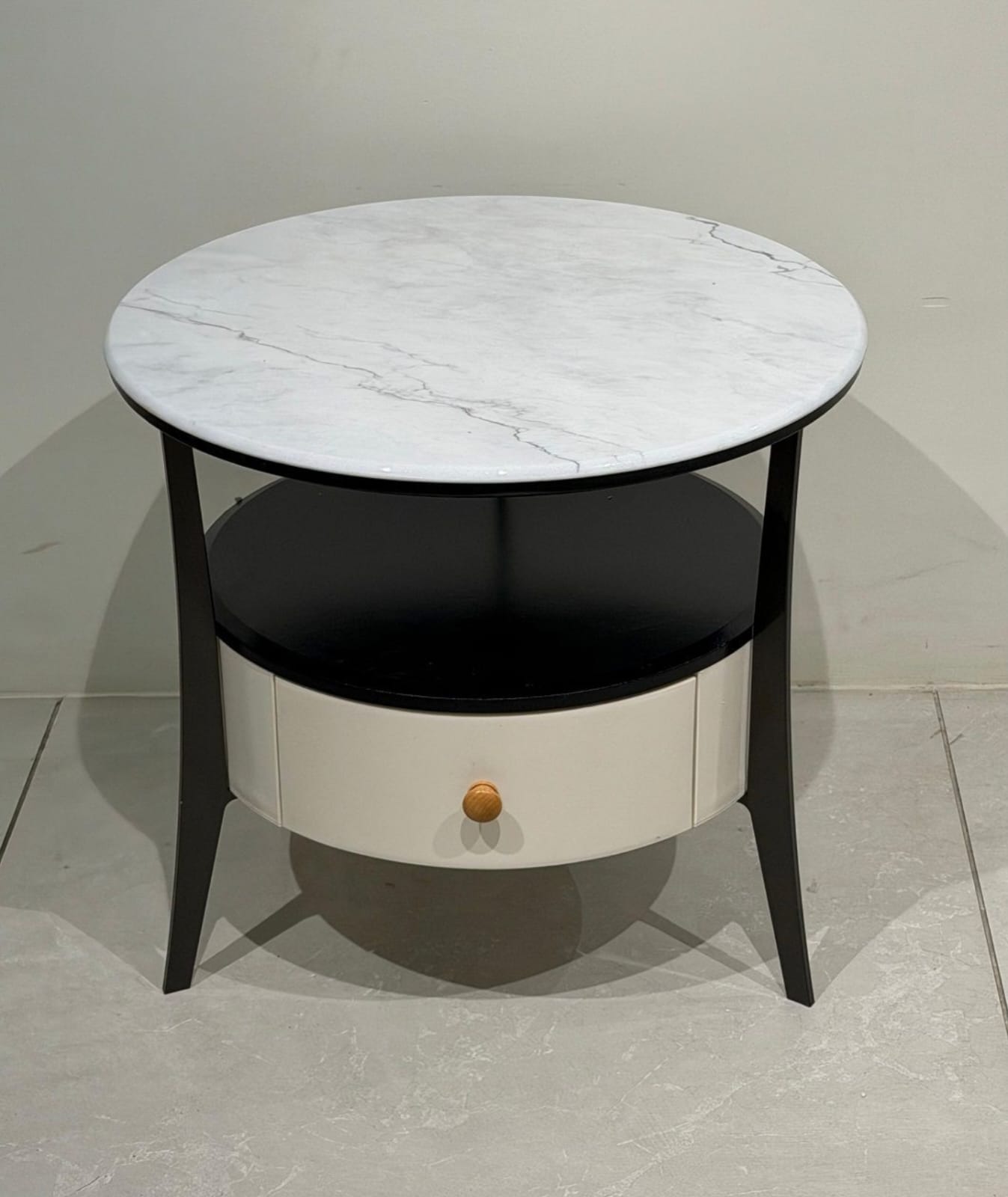 Marble Top Side Table with StorageThis modern side table features an elegant marble top that adds a touch of luxury to any space. Supported by a sturdy metal frame, it offers excellent strength and stability with a clean, contemporary look. The open shelf provides easy access for books or décor, while the smooth storage drawer helps keep essentials neatly organized.Perfect for use beside a sofa, bed, or lounge chair, this side table combines smart storage with refined design, making it a stylish and practical addition to any modern interior.