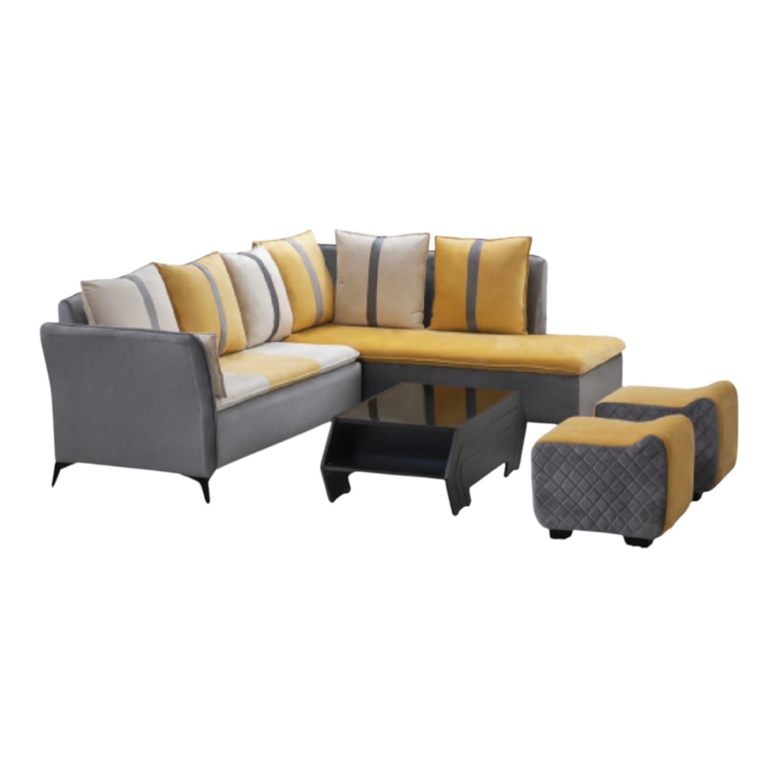Luxury Full-Covered L-Shaped Sofa SetThis elegant L-shaped sofa is designed to elevate modern living spaces with its clean lines and plush comfort. Fully covered with premium upholstery, it offers a seamless, sophisticated look from every angle. The deep seating and well-balanced cushioning ensure superior comfort for everyday relaxation as well as entertaining guests.Crafted with a strong internal wooden frame for long-lasting durability, the sofa is paired with high-density foam that provides excellent support and retains its shape over time. The ergonomically designed backrest and armrests add to the comfort, while the subtle stitching details enhance its contemporary appeal.Perfect for spacious living rooms, this L-shaped sofa maximizes seating without compromising on style, making it an ideal blend of luxury, comfort, and functionality.